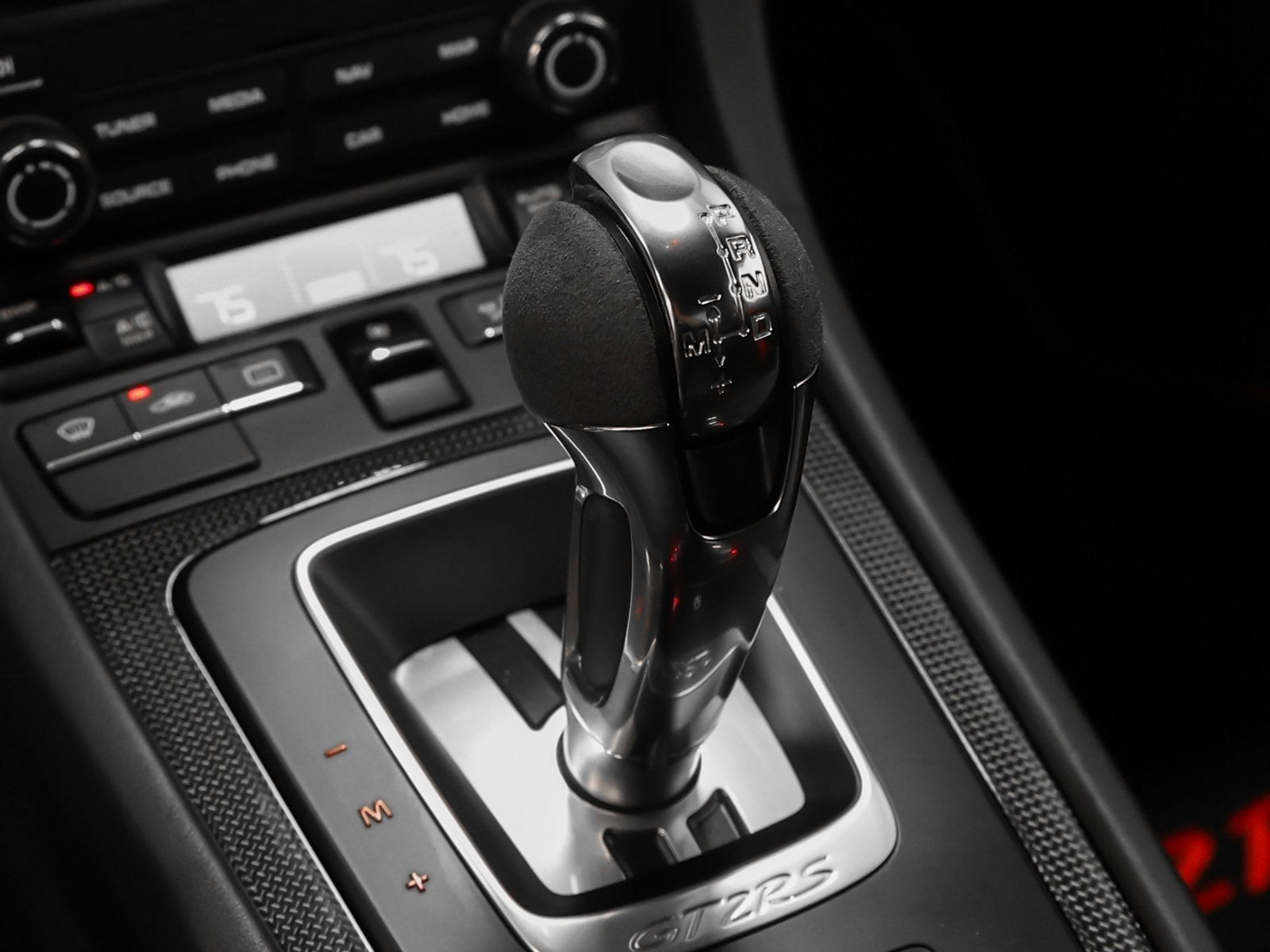 - Alcantara Simulated Suede/Aluminum Gear Shifter Material