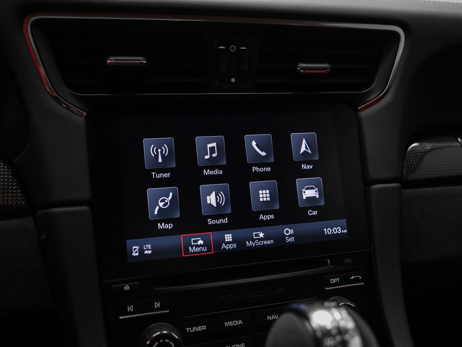 - Radio: Porsche Communication Management (PCM) -inc: mobile phone preparation, audio interfaces (Bluetooth®, USB, aux-in), Connect Plus (online navigation module, Apple CarPlay, telephone module and wireless internet access), Porsche Car Connect (car finder, remote vehicle status, remote services and Porsche Vehicle Tracking System (PVTS)), sound package plus sound system w/8 speakers, 150 watt total output, SiriusXM satellite radio (subscription required) and HD Radio receiver