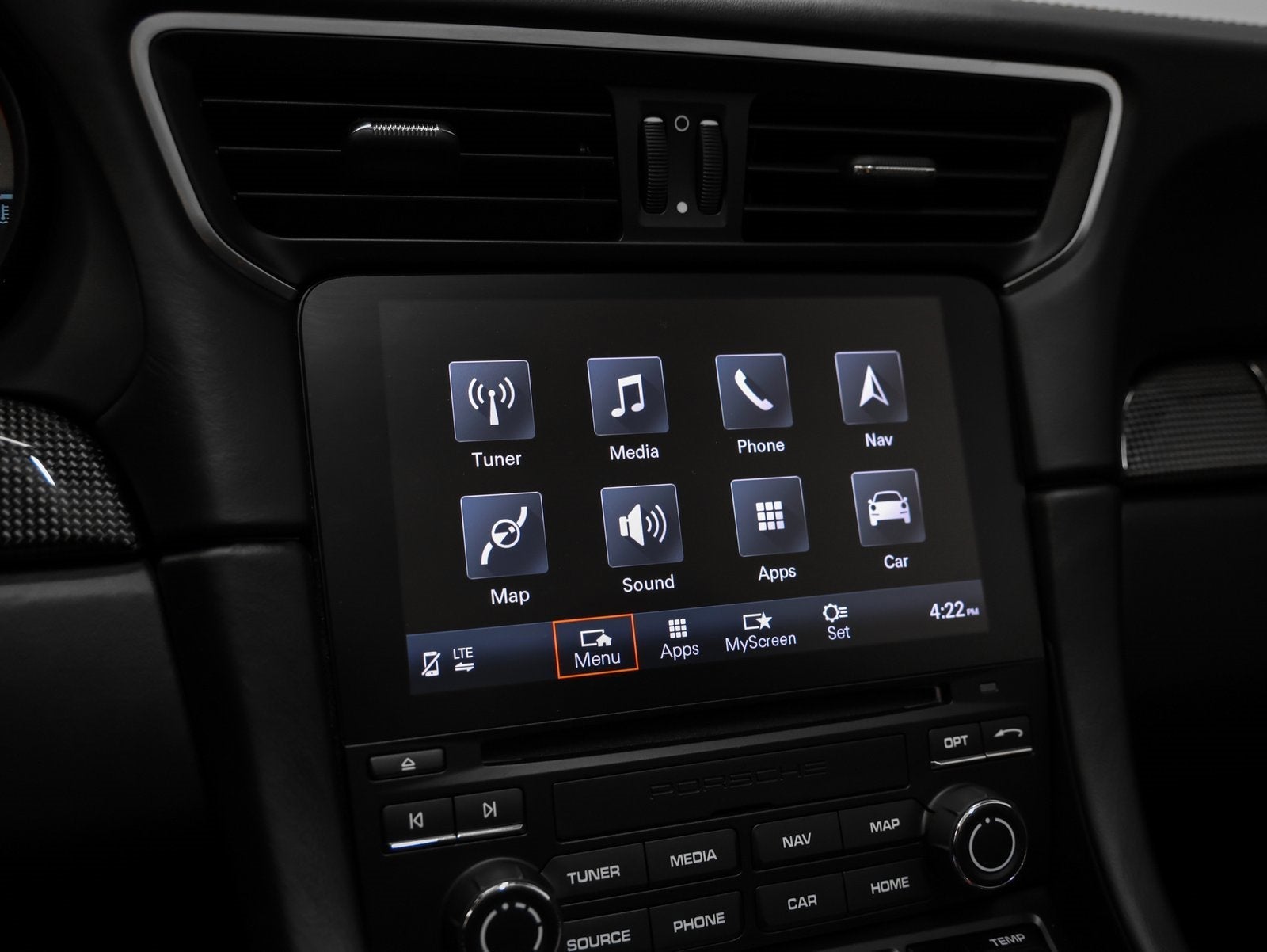- Radio: Porsche Communication Management (PCM) -inc: mobile phone preparation, audio interfaces (Bluetooth®, USB, aux-in), Connect Plus (online navigation module, Apple CarPlay, telephone module and wireless internet access), Porsche Car Connect (car finder, remote vehicle status, remote services and Porsche Vehicle Tracking System (PVTS)), sound package plus sound system w/8 speakers, 150 watt total output, SiriusXM satellite radio (subscription required) and HD Radio receiver