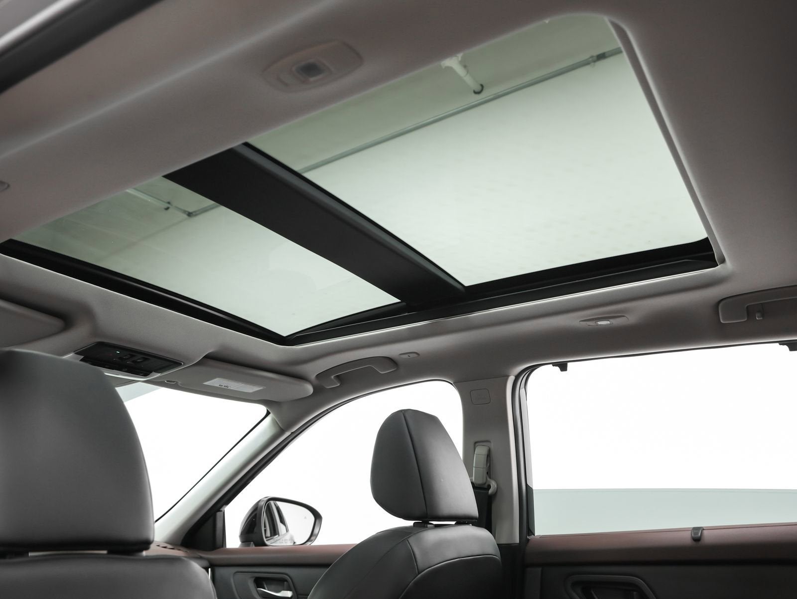 This Nissan has the SV Premium Package which includes PrimaTex leatherette seats, heated leather wrapped steering wheel, heated front seats, 2nd row door sunshades, power liftgate, power panoramic moonroof, roof rails.