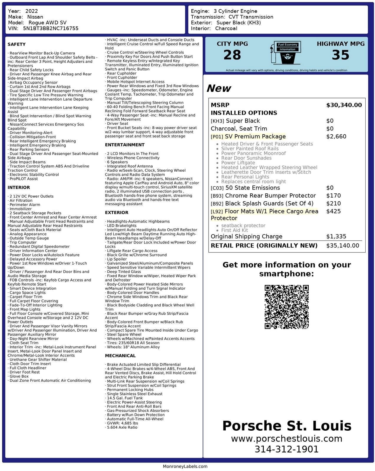 This Nissan has the SV Premium Package which includes PrimaTex leatherette seats, heated leather wrapped steering wheel, heated front seats, 2nd row door sunshades, power liftgate, power panoramic moonroof, roof rails.