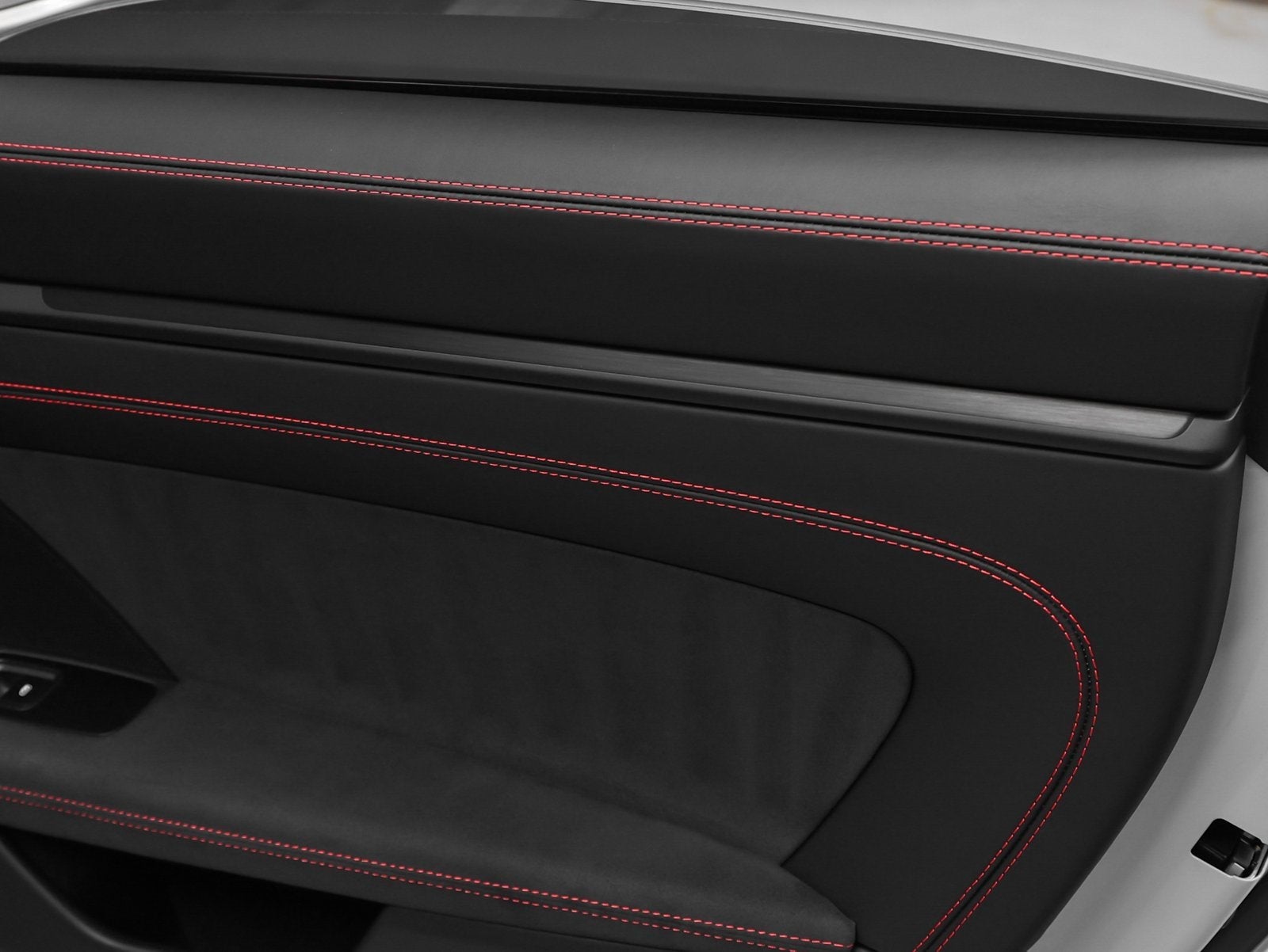 Leather/Race-Tex Interior in Black with Guards Red Stitching