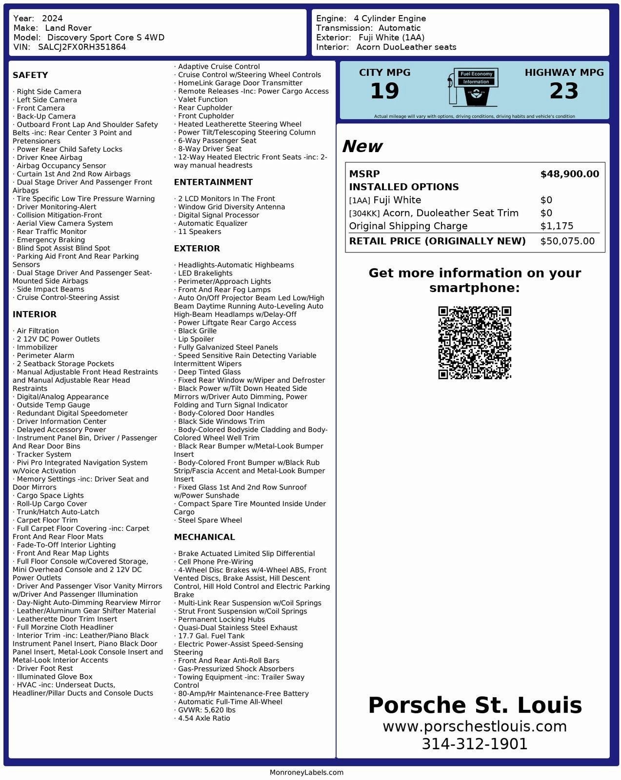 This 2024 Land Rover Discovery Sport Core S represents a perfect balance of luxury, practicality, and versatile performance, available now at Porsche St. Louis. This vehicle has been fully inspected and is ready for its next owner.