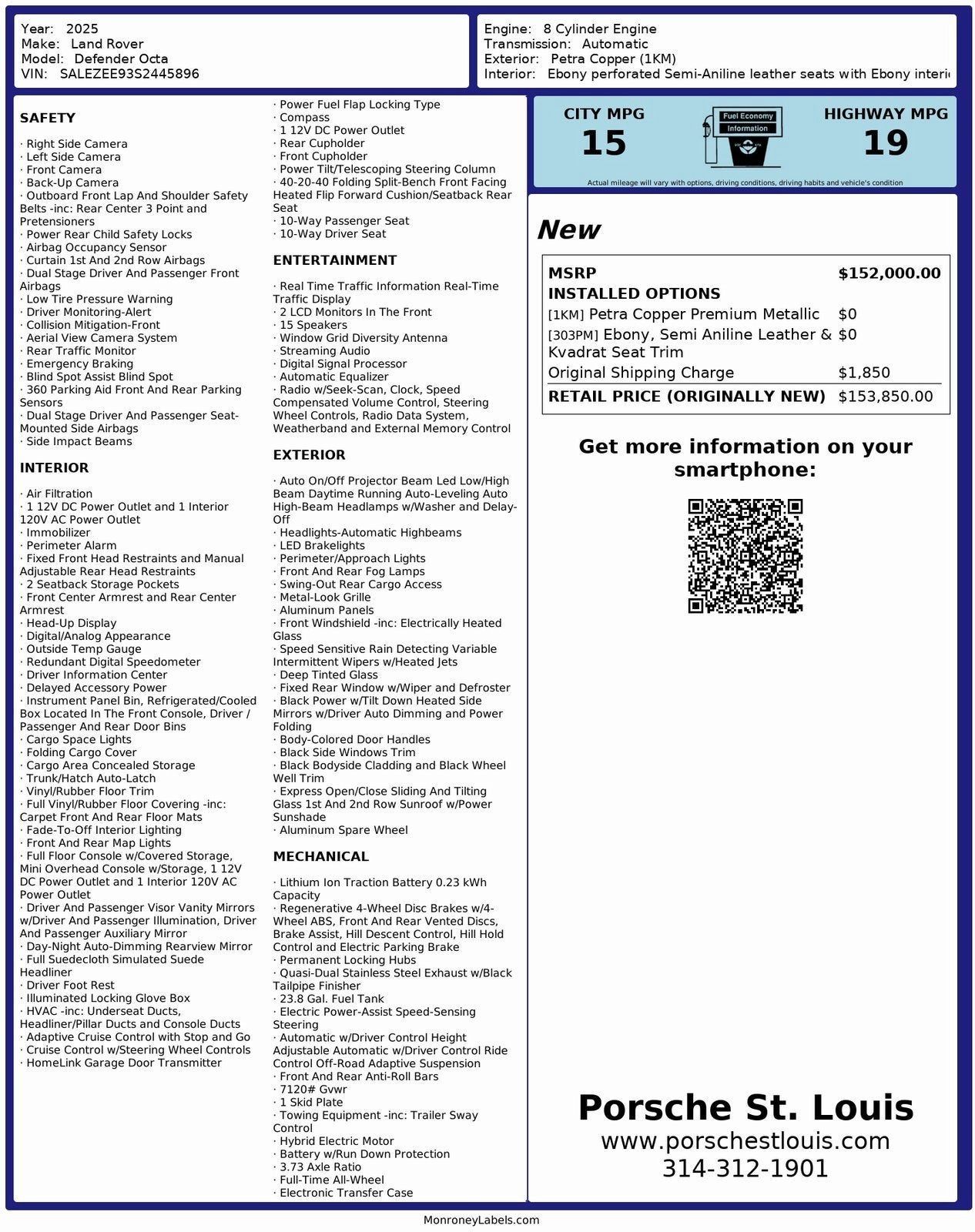 This 2025 Land Rover Defender OCTA redefines what a luxury off-roader can be. Now available at Porsche St. Louis, this locally traded used vehicle has been thoroughly inspected and is ready to take on any terrain with style.